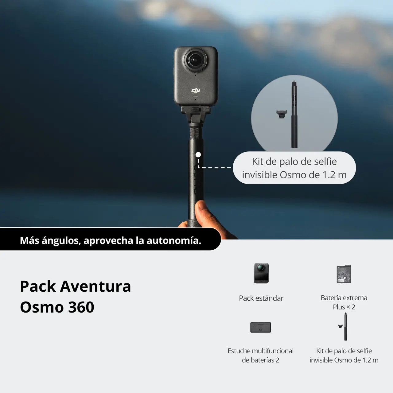 Compatible con accesorios Osmo Action y rosca 1/4”. Cambios rápidos con palo de selfie y adaptador ajustable [7].